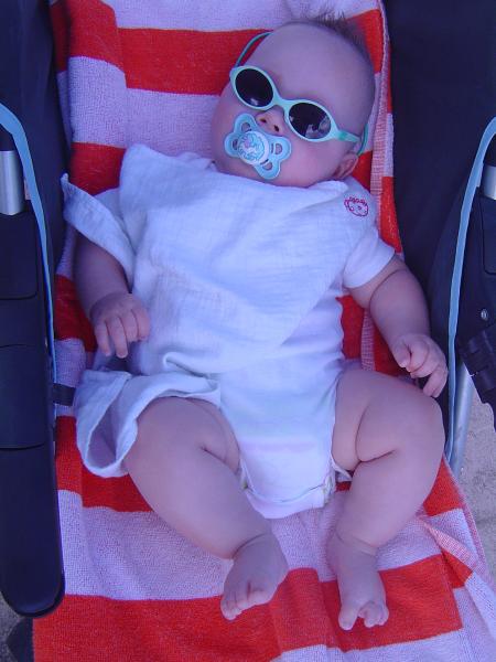 Enfin c'est les vacances ! Après 1 mois à la clinique papa & maman m emmènent en vacances en Bretagne, l' air iodé rien de tel pour avoir la santé ! Fin août c est le grand départ. Au programme : repos, siestes, dodos, je suis sage comme une image !