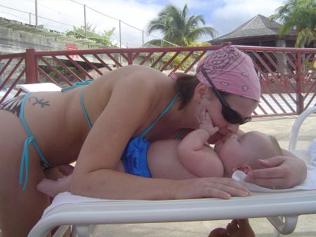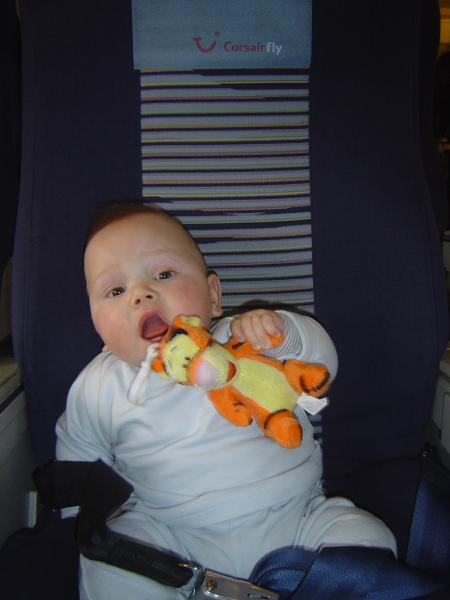 Comme je suis sage comme une image...mes parents ont decidé de faire un grand voyage dont je serais de la partie ! Et oui je pars sous les cocotiers à presque 7 mois, destination la Guadeloupe ! C'est trop beau, il fait chaud mais pas trop et la bas je retrouve de vieilles connaissances de papa et maman (je me suis même fais une copine, elle s'appelle Daisy). J'ai donc pris l'avion pour la premiere fois, le commandant de bord m'a établi un certificat de bapteme de l'air, cool. Je vous laisse découvrir mes super vacances en images :